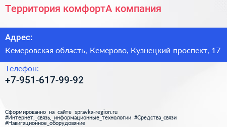 Территория комфортА, компания по адресу Кемеровская область, Кемерово, Кузнецкий проспект, 17 в дальнейшем Организация, размещена в следующих категориях: