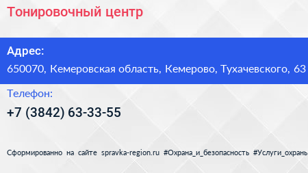 Тонировочный центр по адресу 650070, Кемеровская область, Кемерово, Тухачевского, 63 в дальнейшем Организация, размещена в следующих категориях: