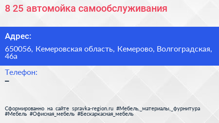 8/25, автомойка самообслуживания по адресу 650056, Кемеровская область, Кемерово, Волгоградская, 46а в дальнейшем Организация, размещена в следующих категориях: