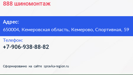 888, шиномонтаж по адресу 650004, Кемеровская область, Кемерово, Спортивная, 59 в дальнейшем Организация, размещена в следующих категориях: