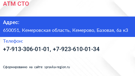 ATM, СТО по адресу 650051, Кемеровская область, Кемерово, Базовая, 6а к3 в дальнейшем Организация, размещена в следующих категориях: