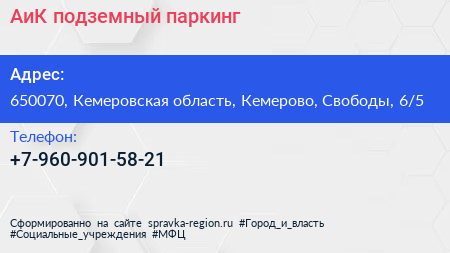 АиК, подземный паркинг по адресу 650070, Кемеровская область, Кемерово, Свободы, 6/5 в дальнейшем Организация, размещена в следующих категориях: