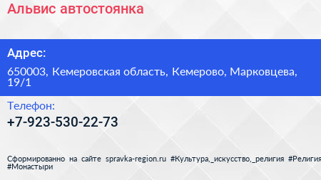 Альвис, автостоянка по адресу 650003, Кемеровская область, Кемерово, Марковцева, 19/1 в дальнейшем Организация, размещена в следующих категориях: