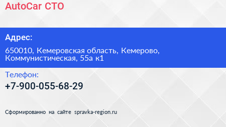 AutoCar, СТО по адресу 650010, Кемеровская область, Кемерово, Коммунистическая, 55а к1 в дальнейшем Организация, размещена в следующих категориях: