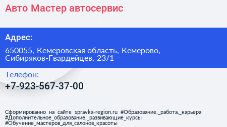 Авто-Мастер, автосервис по адресу 650055, Кемеровская область, Кемерово, Сибиряков-Гвардейцев, 23/1 в дальнейшем Организация, размещена в следующих категориях: