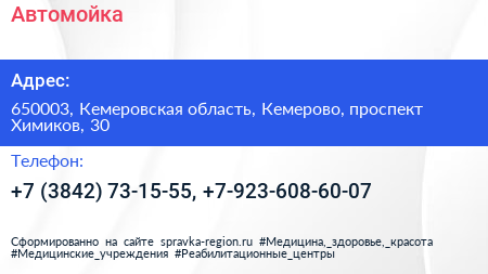 Автомойка по адресу 650003, Кемеровская область, Кемерово, проспект Химиков, 30 в дальнейшем Организация, размещена в следующих категориях: