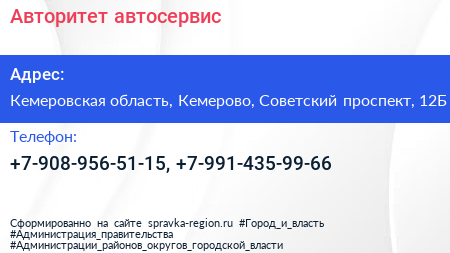 Авторитет, автосервис по адресу Кемеровская область, Кемерово, Советский проспект, 12Б в дальнейшем Организация, размещена в следующих категориях: