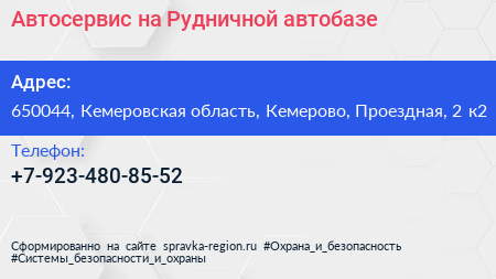 Автосервис на Рудничной автобазе по адресу 650044, Кемеровская область, Кемерово, Проездная, 2 к2 в дальнейшем Организация, размещена в следующих категориях: