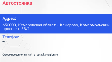 Автостоянка по адресу 650003, Кемеровская область, Кемерово, Комсомольский проспект, 58/1 в дальнейшем Организация, размещена в следующих категориях: