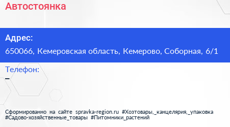 Автостоянка по адресу 650066, Кемеровская область, Кемерово, Соборная, 6/1 в дальнейшем Организация, размещена в следующих категориях:
