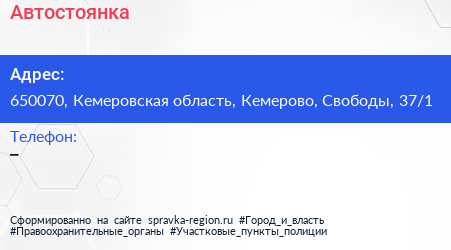 Автостоянка по адресу 650070, Кемеровская область, Кемерово, Свободы, 37/1 в дальнейшем Организация, размещена в следующих категориях: