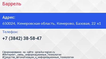 Баррель по адресу 650024, Кемеровская область, Кемерово, Базовая, 22 к1 в дальнейшем Организация, размещена в следующих категориях:
