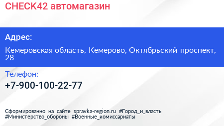 CHECK42, автомагазин по адресу Кемеровская область, Кемерово, Октябрьский проспект, 28 в дальнейшем Организация, размещена в следующих категориях: