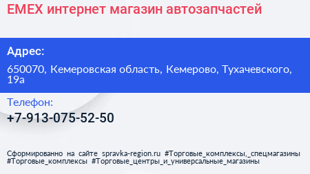 EMEX, интернет-магазин автозапчастей по адресу 650070, Кемеровская область, Кемерово, Тухачевского, 19а в дальнейшем Организация, размещена в следующих категориях: