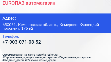 EUROПАЗ, автомагазин по адресу 650051, Кемеровская область, Кемерово, Кузнецкий проспект, 176 к2 в дальнейшем Организация, размещена в следующих категориях: