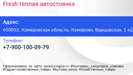 Fresh, теплая автостоянка по адресу 650052, Кемеровская область, Кемерово, Варшавская, 1 к2 в дальнейшем Организация, размещена в следующих категориях: