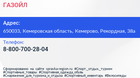 ГАЗОЙЛ по адресу 650033, Кемеровская область, Кемерово, Рекордная, 38а в дальнейшем Организация, размещена в следующих категориях: