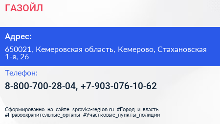 ГАЗОЙЛ по адресу 650021, Кемеровская область, Кемерово, Стахановская 1-я, 26 в дальнейшем Организация, размещена в следующих категориях: