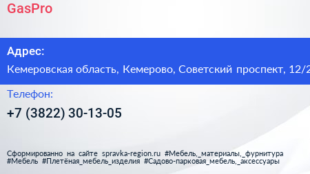 GasPro по адресу Кемеровская область, Кемерово, Советский проспект, 12/2 в дальнейшем Организация, размещена в следующих категориях: