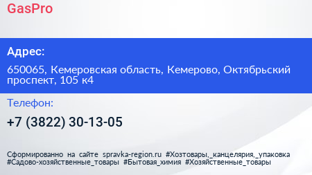 GasPro по адресу 650065, Кемеровская область, Кемерово, Октябрьский проспект, 105 к4 в дальнейшем Организация, размещена в следующих категориях: