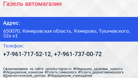 Газель, автомагазин по адресу 650070, Кемеровская область, Кемерово, Тухачевского, 52а к1 в дальнейшем Организация, размещена в следующих категориях: