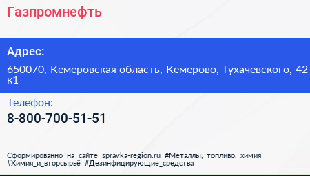 Газпромнефть по адресу 650070, Кемеровская область, Кемерово, Тухачевского, 42 к1 в дальнейшем Организация, размещена в следующих категориях: