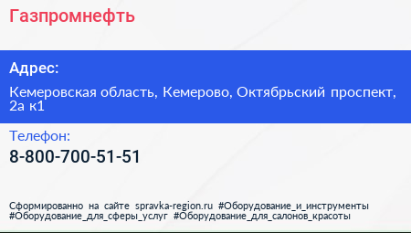 Газпромнефть по адресу Кемеровская область, Кемерово, Октябрьский проспект, 2а к1 в дальнейшем Организация, размещена в следующих категориях: