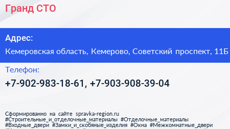 Гранд, СТО по адресу Кемеровская область, Кемерово, Советский проспект, 11Б в дальнейшем Организация, размещена в следующих категориях: