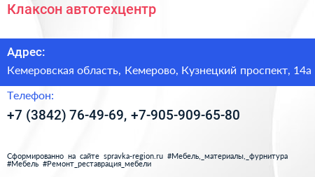 Клаксон, автотехцентр по адресу Кемеровская область, Кемерово, Кузнецкий проспект, 14а в дальнейшем Организация, размещена в следующих категориях: