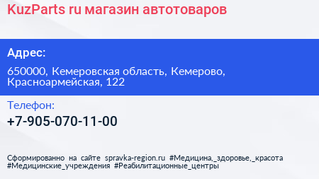 KuzParts.ru, магазин автотоваров по адресу 650000, Кемеровская область, Кемерово, Красноармейская, 122 в дальнейшем Организация, размещена в следующих категориях: