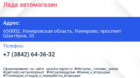 Лада, автомагазин по адресу 650002, Кемеровская область, Кемерово, проспект Шахтёров, 31 в дальнейшем Организация, размещена в следующих категориях: