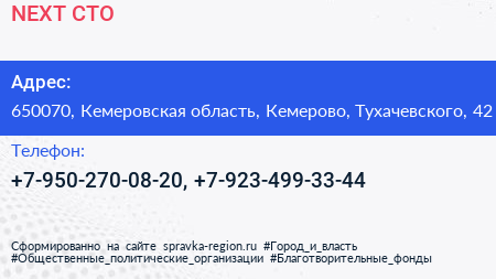 NEXT, СТО по адресу 650070, Кемеровская область, Кемерово, Тухачевского, 42 в дальнейшем Организация, размещена в следующих категориях: