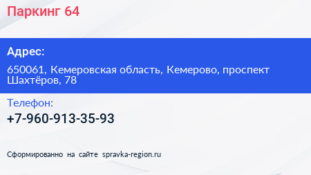 Паркинг 64 по адресу 650061, Кемеровская область, Кемерово, проспект Шахтёров, 78 в дальнейшем Организация, размещена в следующих категориях: