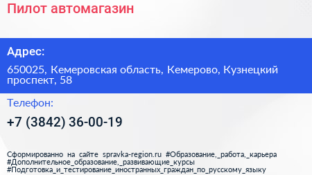 Пилот, автомагазин по адресу 650025, Кемеровская область, Кемерово, Кузнецкий проспект, 58 в дальнейшем Организация, размещена в следующих категориях: