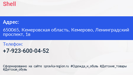 Shell по адресу 650065, Кемеровская область, Кемерово, Ленинградский проспект, 1в в дальнейшем Организация, размещена в следующих категориях: