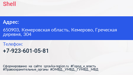 Shell по адресу 650903, Кемеровская область, Кемерово, Греческая деревня, 304 в дальнейшем Организация, размещена в следующих категориях: