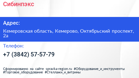 Сибинпэкс по адресу Кемеровская область, Кемерово, Октябрьский проспект, 2а в дальнейшем Организация, размещена в следующих категориях: