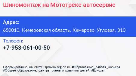 Шиномонтаж на Мототреке, автосервис по адресу 650010, Кемеровская область, Кемерово, Угловая, 310 в дальнейшем Организация, размещена в следующих категориях: