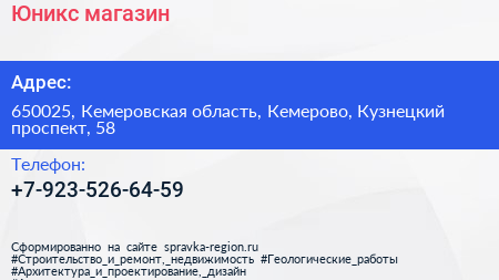 Юникс, магазин по адресу 650025, Кемеровская область, Кемерово, Кузнецкий проспект, 58 в дальнейшем Организация, размещена в следующих категориях: