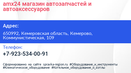 amx24, магазин автозапчастей и автоаксессуаров по адресу 650992, Кемеровская область, Кемерово, Коммунистическая, 109 в дальнейшем Организация, размещена в следующих категориях: