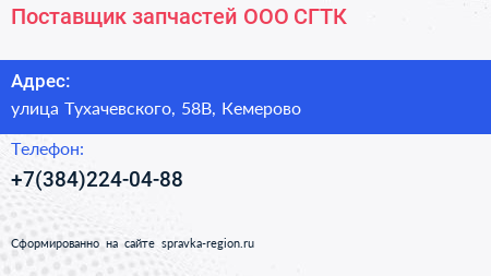 Поставщик запчастей ООО СГТК по адресу улица Тухачевского, 58В, Кемерово в дальнейшем Организация, размещена в следующих категориях: