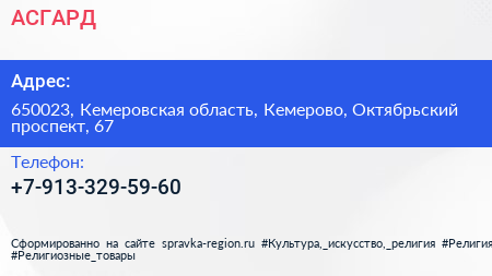 АСГАРД по адресу 650023, Кемеровская область, Кемерово, Октябрьский проспект, 67 в дальнейшем Организация, размещена в следующих категориях: