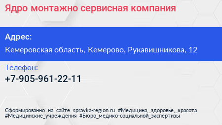 Ядро, монтажно-сервисная компания по адресу Кемеровская область, Кемерово, Рукавишникова, 12 в дальнейшем Организация, размещена в следующих категориях: