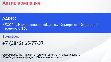 Актив, компания по адресу 650021, Кемеровская область, Кемерово, Коксовый переулок, 16а в дальнейшем Организация, размещена в следующих категориях: