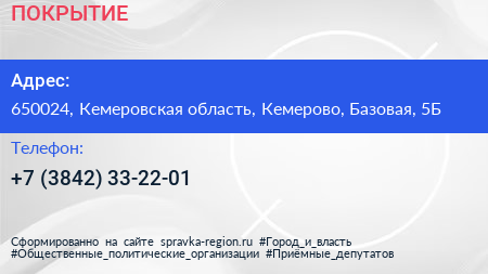 ПОКРЫТИЕ по адресу 650024, Кемеровская область, Кемерово, Базовая, 5Б в дальнейшем Организация, размещена в следующих категориях: