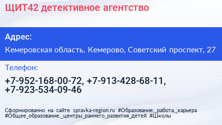 ЩИТ42, детективное агентство по адресу Кемеровская область, Кемерово, Советский проспект, 27 в дальнейшем Организация, размещена в следующих категориях: