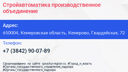Стройавтоматика, производственное объединение по адресу 650004, Кемеровская область, Кемерово, Гвардейская, 72 в дальнейшем Организация, размещена в следующих категориях: