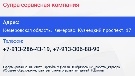 Супра, сервисная компания по адресу Кемеровская область, Кемерово, Кузнецкий проспект, 17 в дальнейшем Организация, размещена в следующих категориях: