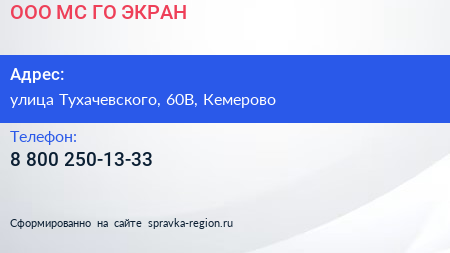 ООО «МС ГО ЭКРАН» по адресу улица Тухачевского, 60В, Кемерово в дальнейшем Организация, размещена в следующих категориях: