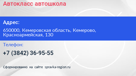 Автокласс, автошкола по адресу 650000, Кемеровская область, Кемерово, Красноармейская, 130 в дальнейшем Организация, размещена в следующих категориях: